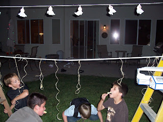 Can you say CHAOS!!! I guess that's what happens when you invite 22 8-11 year olds to your house for a birthday bash! Maddy turned 8 on Wednesday. Mike turned 10 yesterday, and we decided to have a combined birthday Halloween party! We had stations set up for Halloween games, they made their own pizzas, decorated cookies, ate doughnuts off of a string, went on a candy hunt in the back yard, jumped on the trampoline, played guitar hero, and did a lot of screaming and laughing. THANK YOU MOM FOR COMING TO THE RESCUE. I was obviously just a little overwhelmed with so many kids... when my mom offered to help, I was rescued. It was a fun night! Happy Birthday Mike and Maddy! I love you both so much!!